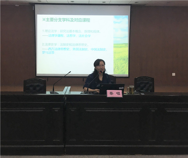 首先,法学系主任蔡唱教授为同学们作法学专业介绍。“法律是在秩序和正义的基础上,维持人的自由和生存发展空间。”蔡老师从秩序的需求和正义的探索阐释了法律的性质和作用,并为从法学体系、学习方法和思维、法学学生基本核心能力等方面对法学专业以及法学学生应该具备的基本素质等作了全面细致的介绍。蔡教授还鼓励同学们多看案件案例,理论联系实际,逐步培养批判性思维,努力提升口头表达、法庭辩论、法律文书写作等能力。