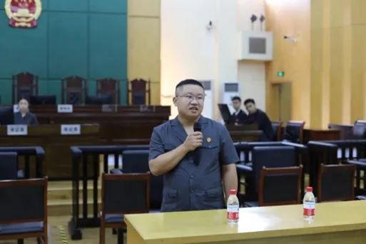 师生的到来表示了感谢,他认为本次展示活动中同学们表现优异,庭审程序和用语规范,他认为,通过这种理论和实践碰撞的活动,能够提高同学们的实践能力,给同学们带来不一样的感受,同时希望同学们能够报答社会,实现社会的公平正义。
