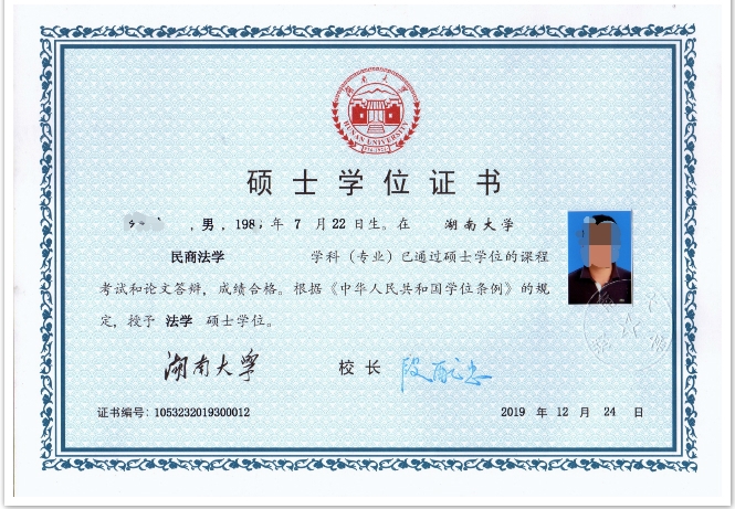 法学硕士学位证书