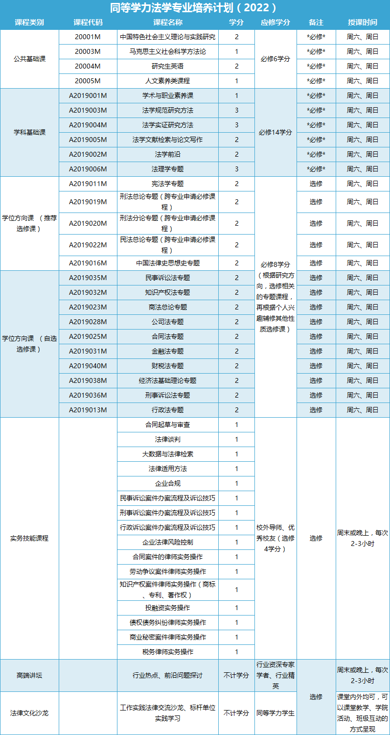 附:主修课程设置(仅供参考,现已更新法学硕士培养体系,以实际安排的新课程为准)