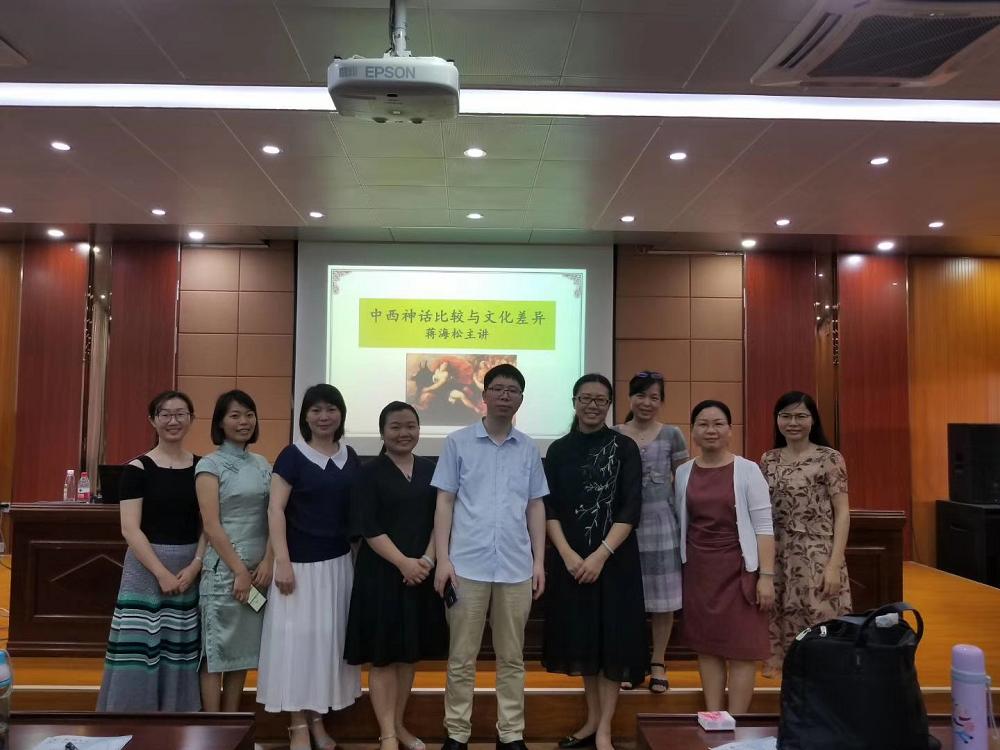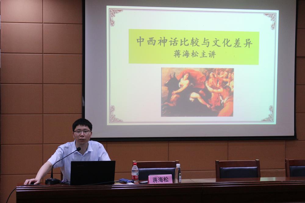副教授蒋海松应邀到广西壮族自治区讲学。2019年5月17日下午,蒋海松应邀在广西北部湾大学国际教育与外国语学院举行“中西神话比较与文化差异”学术讲座。国际教育与外国语学院冯丽院长、刘卫玲副院长以及该院全体师生共同聆听了此次讲座。这也是蒋海松主创的中国大学MOOC《法说西游记》全国线下巡讲第6期。