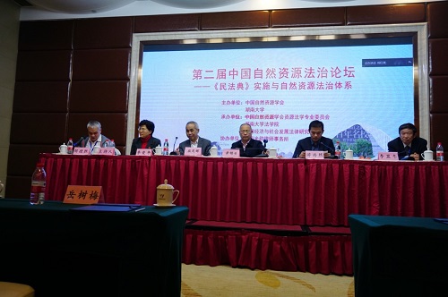 2020年5月28日《中华人民共和国民法典》由十三届全国人大三次会议审议通过。为更好地将《民法典》关于绿色理念和原则、自然资源产权等方面的规定融入自然资源法律体系,推进生态文明建设,第二届中国自然资源法治论坛暨“《民法典》实施与自然资源法治体系”研讨会于2020年10月17日在湖南省长沙市成功召开。会议采取了线上与线下相结合的方式举行。