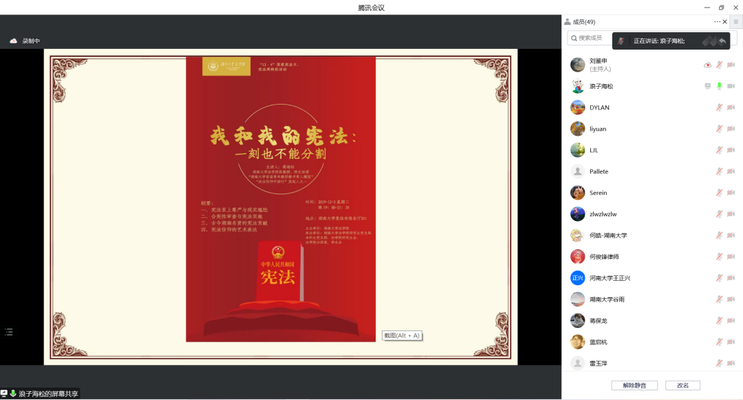 讲座进入问答环节,同学们踊跃发言提问,蒋老师一一予以回应并给予大家真切的祝愿,希望大家都成为护法者、护宪者。“宪法不是远在天边,而是就在身边”。至此讲座取得圆满成功。