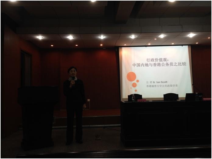 随后公婷教授介绍了她和合作者对内地与香港公务员行政价值观进行的一项比较研究。她的团队通过对香港355名公务员和内地366名政府官员的调查,以法治观念、个人的价值观与组织价值观的一致性、组织内部的冲突、个人工作与职业道德&法规的一致性、改革倾向等为测量指标体系,对内地与香港公务员行政价值观进行了比较,得出香港与内地公务员的行政价值观之间存在异同。在香港,公务员行政能力高,规章制度深入人心并受到尊重,因而进行颠覆性变革的可能性小;公务员尊重所属的局和部门,认为所属的上司是贤德的,个人价值观与组织价值观之间极少存在分歧;公务员严格遵守规程,这些规程或多或少与公众利益是一致的;但是韦伯式的科层制日趋僵化,抵制某种变革可能会导致抵制所有变革。在内地,相比于香港,内地的公务员系统发展不完善,“人治”或“权治”的特征明显,要求新上任的官员具有改革创新能力,这反过来又强化了以上特征;与香港公务员相比,内地公务员对组织归属感较少,更有可能选择辞职,组织内更容易产生冲突,更愿意接受来自组织外的意见,他们并不厌恶变革并可能更愿意投入到重大的改革中。