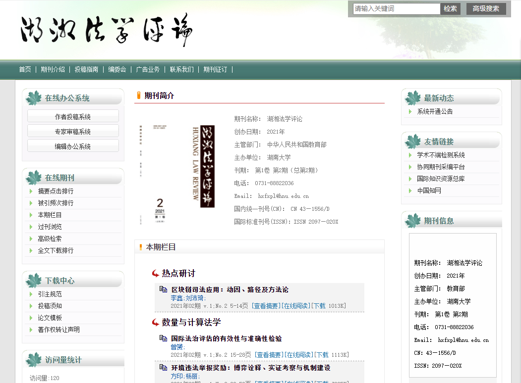 为进一步加强刊物数字化、网络化和规范化管理,提高采编效率,提升办刊质量,《湖湘法学评论》在中国知网的技术支持下,特开通“腾云”期刊协同采编系统(知网版),官方网站也同步开通。目前该系统基础功能已经基本调试完毕,其他部分内容将于未来不断更新完善。