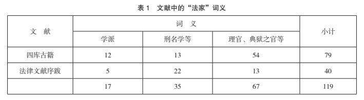 将上述两处古籍所得“法家”词义数据统合如表 1: