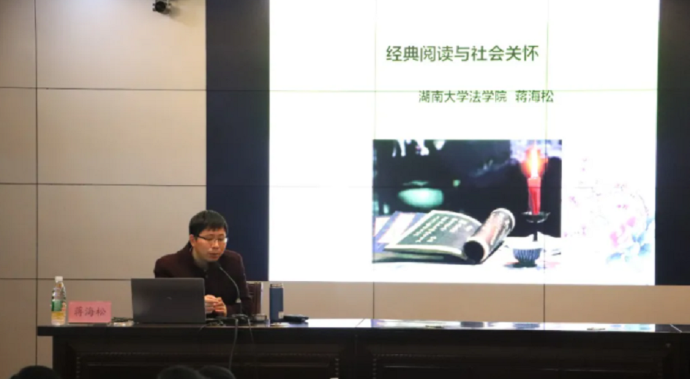副院长、“全国七五普法先进个人”获得者蒋海松老师作题为“经典阅读与社会关怀”的讲座,博彩平台