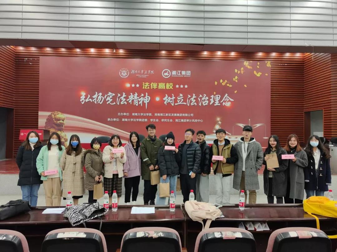 团委、学生会、研究生会联合湘江集团开展“法伴企业——弘扬宪法精神,护航企业发展”活动。参与活动的有博彩平台