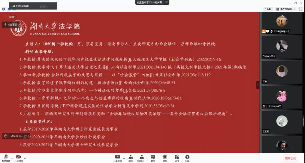 发表了高水平论文的2018级博士研究生李牧翰同学作为分享嘉宾,博彩平台