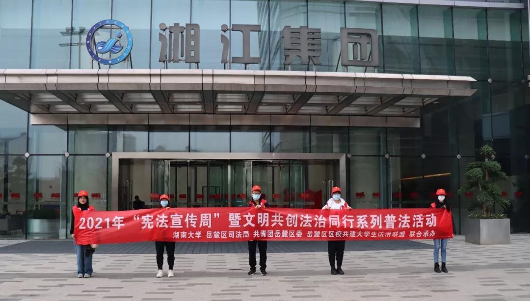 团委、学生会、研究生会联合湘江集团在国家宪法日期间开展了“法伴高校—弘扬宪法精神,树立法治理念”主题教育活动,活动形式主要为宪法晨读、宪法知识竞赛等。