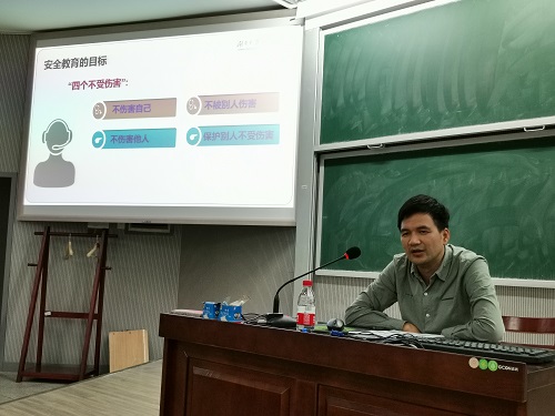 讲座伊始,朱老师分别列举“无知型”、“遗忘型”、“侥幸型”、“自恃型”、“冲动型”五种缺乏安全意识的表现,从态度上、认识上和技能上阐明此次安全教育的目标,并希望同学们通过此次安全教育学会“不伤害自己”、“不伤害他人”、“不被别人伤害”、“保护别人不受伤害”。