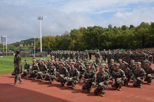 新生组成一个女生方阵,同公共管理学院共同组成一个男女混合方阵,部分表现优异的新生分别进入到战术方阵、刺杀操方阵参与训练,军训工作初见成效。