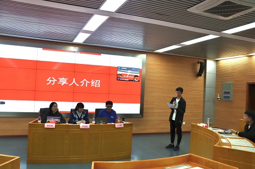 宪法学与行政法学专业的李思蒙首先分享了自己的经验。李思蒙以“专业课及竞赛学习经验分享”为主题,着重向同学们讲解课程论文的写法以及期末考试的复习方式,指出拥有SIT、理律杯、贸仲杯等竞赛经历在保研过程中的重要性。