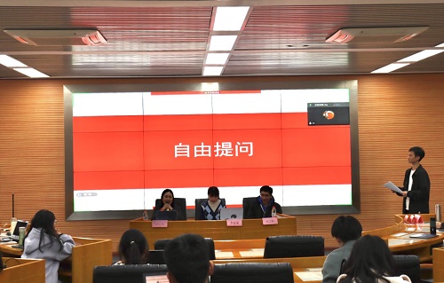 经验分享全部结束后,现场同学踊跃地提出了自己的问题。例如,对于如何在保研时最大程度发挥出自己的英语优势的问题,现场三位学长学姐给出了尽量多刷一次六级,参加一些英语方面的竞赛,练好口语等建议。线上观看的同学也热情地参与进来,纷纷提出自己的问题,学长学姐们都耐心地进行解答。