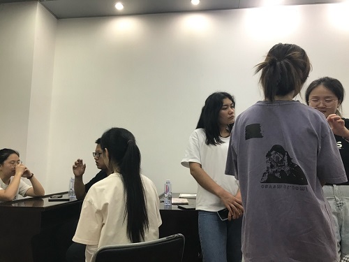 最后,王杨濮表示真正投入实践和纸上谈兵是完全不一样的,为使台下的同学有更深切的体验,他依照之前自己的经历对台下的19级同学进行提问,模拟真实的面试,并依据同学的回答进行解读和评价:实际内容并不是最为重要的部分,整体的逻辑和气质才是最重要的。