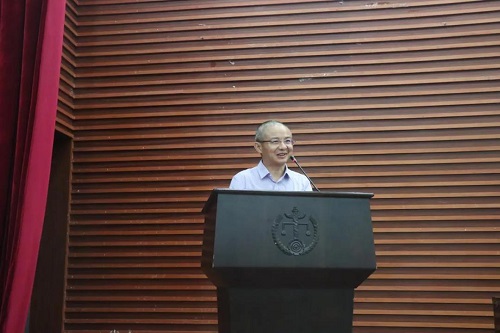 继续研读法学专业。他以六个英文单词作为概要,向同学们阐释什么是合法法律人应该具备的素质:justice,法律应该是正义的化身,我们应该心怀正义,学会让冰冷的法律条文具有温度;unite,智者互抬,愚者互踩。和而不同,学会尊重多样性;reformation,研究生应该重构自己的学习态度和学习方法,要完成从本科生到研究生的转变;innovation,我们应该培养创新思维,以创新思维回应数字化时代对法律的要求;self-control,学会自我控制;think,学会思考。