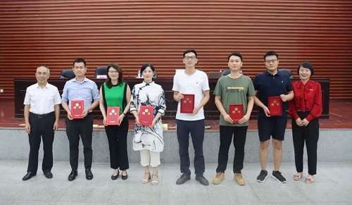 罗英副书记向新生及家长介绍2021级本科生辅导员及各班新生班主任,随后由屈院长为2021级新生班主任郭哲、王静、王中、刘怡达、彭中遥、熊亚文颁发聘书。