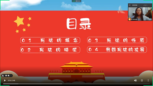 2021年7月25日至8月1日,朱雨欣同学对接宁夏回族自治区中卫市中卫一小的学生,开展为期一周的小学生网络课堂普法活动。受疫情影响,原计划线下开展的支教活动改为了网络授课。给小学生展开的普法活动,让孩子们深入了解我国宪法,讲解小学生更容易接触到的法律知识,使其对法律产生兴趣。