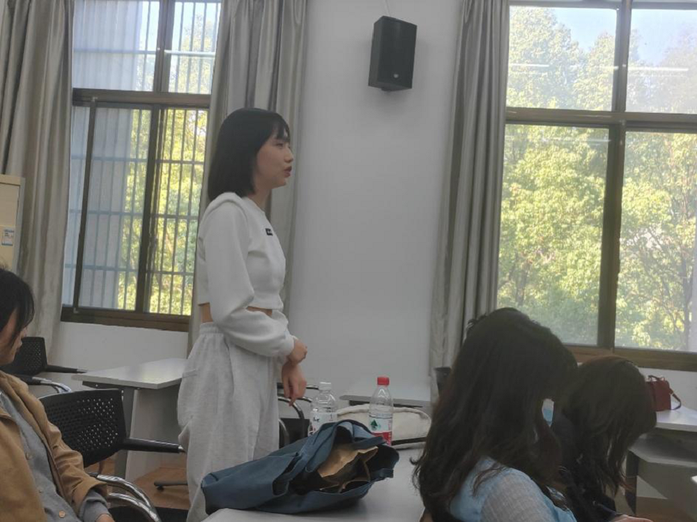 紧接着,研会新成员各自展开工作成果与心得分享,活动部彭志勇同学分享了在筹备篮球赛过程中的宝贵经验,科研创新部王小川同学了总结了自己在组织活动过程中发现的问题并提出了改进建议,新媒体中心林婷同学就公众号运营、创新推文内容、新闻稿件的攥写分享了自己的工作经验及感悟,她表示加入新媒体中心不仅磨练了写稿成文的能力,还收获了友谊、丰富了校园生活,希望在接下来一年与研会同学进行更多交流。