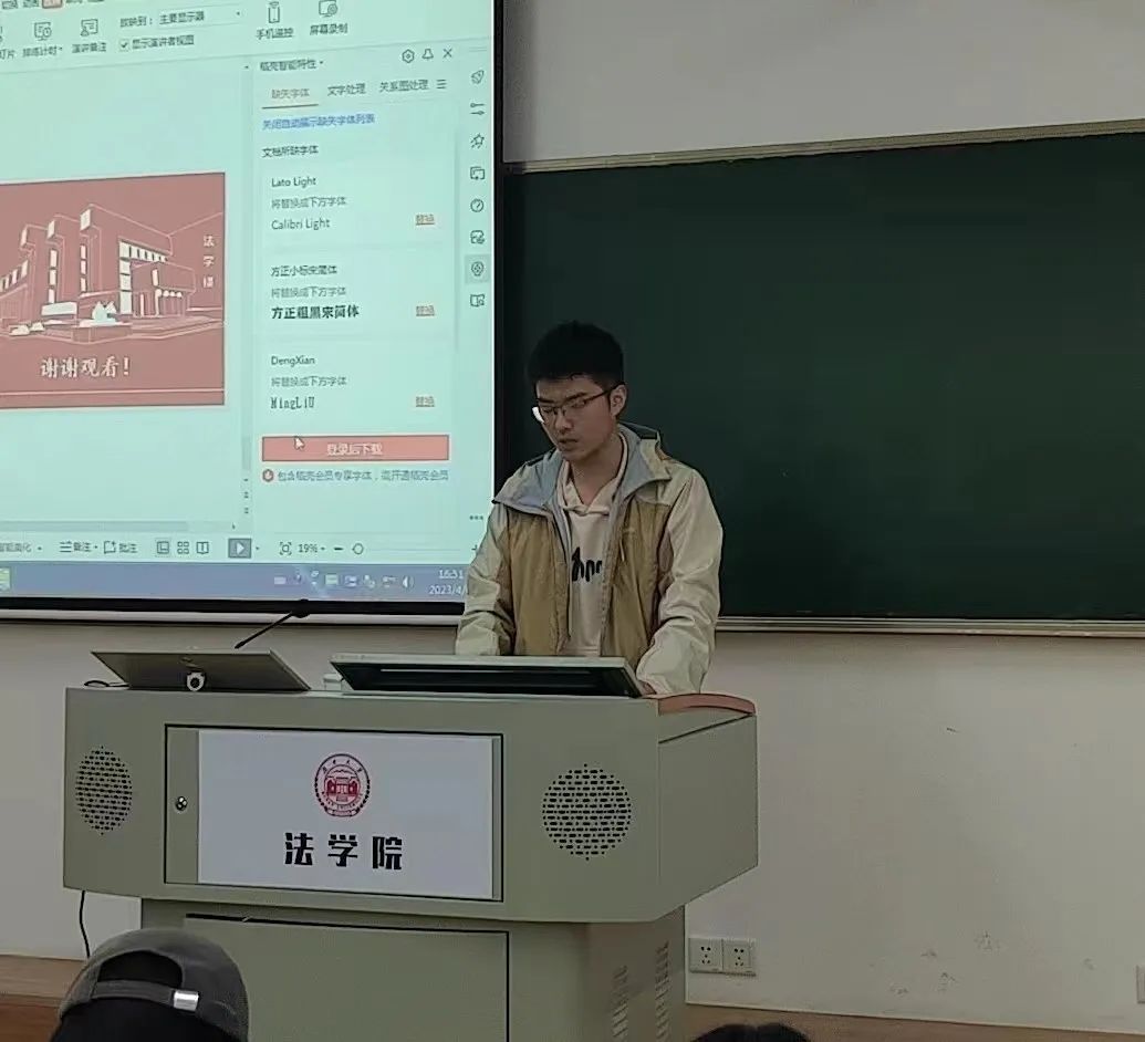 学生会权益部负责人靳高策对已开展的部门工作进行总结并反思工作中存在的不足如活动开展时间与考试有冲突、活动形式不新颖以至同学兴趣不高等。