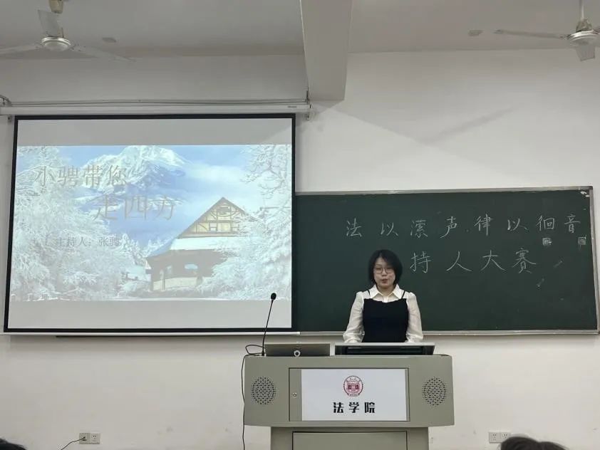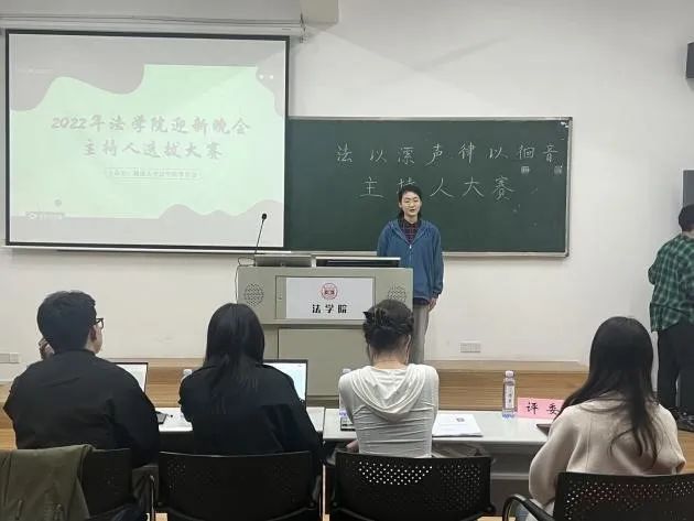 303教室举办“法以潆声,律以徊音”主持人大赛。本次比赛共有九名同学报名参加,包含7位本科生及2位研究生。为综合考察选手能力,本次比赛共设置四个环节,特邀请上一届主持人比赛选手担任评委,由评委点评选取男生组和女生组前两名为优胜者。
