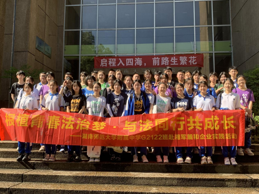 为培养知法、懂法、守法的新时代公民,为未来的法治中国建设凝聚更多力量,2023年6月27日,湖南师范大学附属中学高2122班联合湘军麓和律师事务所,开展“植根青春法治梦•与法同行共成长”青少年法律研学活动,来到博彩平台