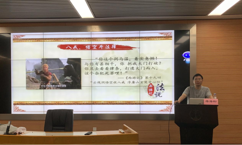 最后,蒋海松老师开讲《法说西游记》,将《西游记》中栩栩如生的人物形象结合法律小知识进行阐释,生动解读青少年喜闻乐见的《西游记》的法律故事,进一步以案说法、以例释法,并在法治问答中引导同学之间团结友爱、互帮互助,同学们纷纷参与互动,现场气氛热烈。讲座结束后,蒋海松老师与湖南师大附中的同学们合影留念,并欢迎大家报考博彩平台