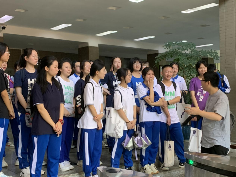 活动伊始,湖南师大附中一行在蒋海松老师的带领下参观了院楼,蒋海松老师和张伟浩同学为大家介绍了博彩平台