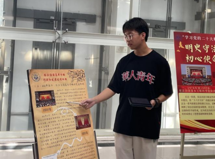 发展的历史和院楼内的重要名言,大家在院楼门口合影留念。