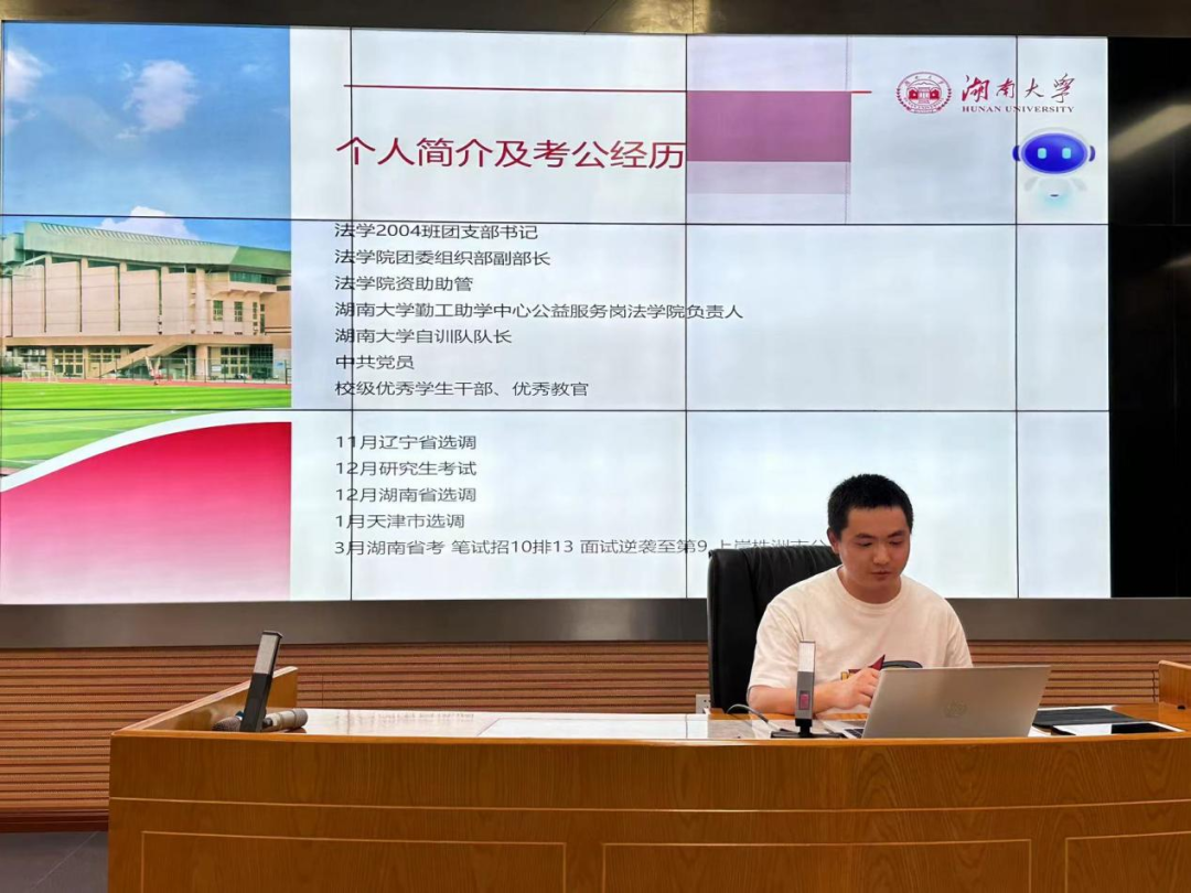 徐涛同学从自己国考前期的时间安排上切入,向同学们展示了自己从考公报名到备战考公的时间规划。他认为首先要做好整体规划,因为在考公的过程中可能要参加好几场考试。接着,他向同学们介绍了他对于岗位选择的考虑。最后,他推荐了一些优质教材以及报考技巧、笔试答题技巧。