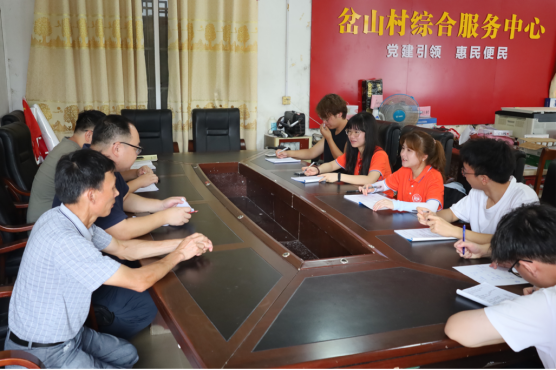 (团队成员与秀水村村委会毛兴剑副主任进行座谈)