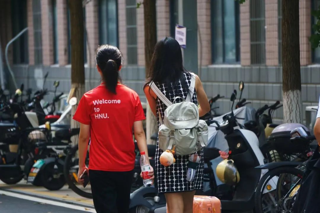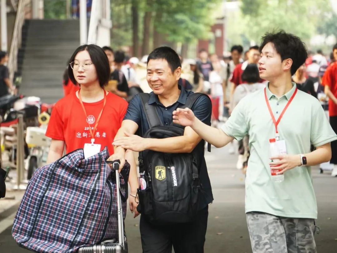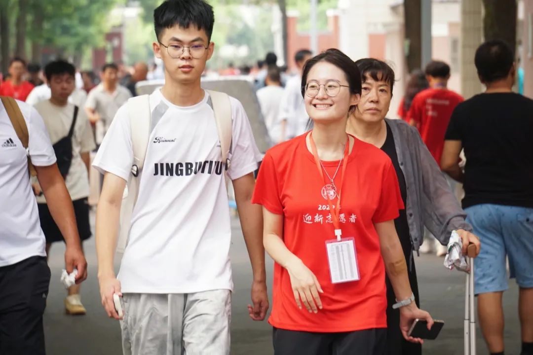 带着新生穿过校园,介绍周围的建筑,为他们答疑解惑,看到一双双闪烁着好奇与希望的眼眸,仿佛与一年前的自己重合。夏日炎炎,汗流浃背,但迎新志愿者们没有一丝一毫的懈怠,认真地完成搬运行李,引导报道等工作。迎新工作是忙碌的,更是幸福的,为新生们的朝气蓬勃所感染,因家长们的声声感谢而喜悦。
