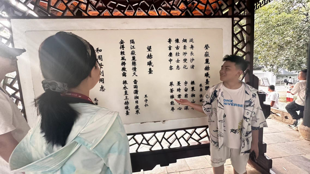 红墙绿蔓见证了千年风雨的裹挟,枫林爱晚看遍代代水墨丹青。在离开岳麓书院前,同学们再次回望“惟楚有才,于斯为盛”的对联,深感这是每一位湖大学子的骄傲和责任。通过这次活动,同学们不仅重温了习近平总书记的考察路线,更深刻理解了作为新时代青年的使命和责任。希望吾辈青年以破浪之势、雄鹰之姿,续写华夏盛世之章,传唱革命不朽之歌。不负时代嘱托,不负青春韶华,为实现中华民族伟大复兴的中国梦贡献自己的青年力量。