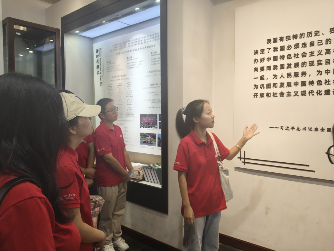 岳麓书院历史陈列馆向同学们展现着岳麓书院历经千年、文脉绵延、与时俱进的风采。这里是朱张会讲的旧址,见证过朱熹张栻两位理学家不俗的口才和庞博的学识;这里是天下闻名的育人摇篮,“惟楚有才,于斯为盛”响彻九州;这里同时也是革命的摇篮,毛泽东、何叔衡、蔡和森等革命伟人都曾在岳麓书院留下他们的痕迹。尽览岳麓书院辉煌的历史,同学们不禁发出感叹:岳麓书院不仅是湖大过去的荣光,更应是湖大学子肩上的责任。作为新时代青年的我们,应牢记习近平总书记的思想指导,不负青春,不负使命,在时代洪流快速演变的大背景下,不断突破自我,勇攀高峰,誓做经世致用的领军人物。