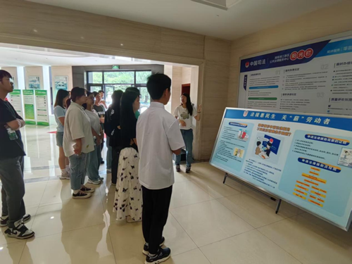 17名本科生于2025年6月20日上午前往湘江新区公共法律服务中心观摩学习。该活动由副院长蒋海松老师统筹策划,这是夏季实践课程“法律援助”的活动之一,得到了湘江新区公共法律服务中心的大力支持。