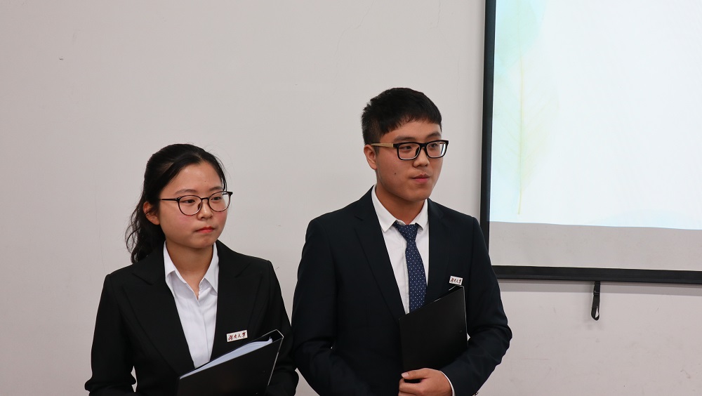 在主持人为答辩小组介绍过本次答辩的规则后,“最佳主题团日活动”候选班级首先进行答辩展示。法学1701、1704、1705班以及行政管理1702班从支部概况、活动内容、活动目的等方面入手,通过别具特色的PPT形式介绍了进入大学以来班级团支部的建设状况。参观省博、游览橘子洲、义卖明信片、医院志愿行……各个班级围绕不同的团日主题展示了非富多彩的活动内容和青年团员朝气蓬勃、紧跟党走的青春活力。在各个班级进行完答辩后,主席团成员针对每班答辩的内容及形式进行点评,并对不足之处提出修改建议。
