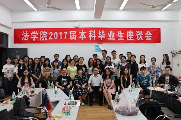 2017届本科毕业生座谈会在学院304教室举行。院长屈茂辉教授,院党委副书记、副院长付蓉芬老师,综合管理办公室主任湛建云老师,本科生2013级辅导员王耿翔老师出席了座谈会。与会领导和老师与毕业生代表进行了深入交流,听取并回应了同学们对于母校、学院发展建设的意见和建议,共同为实现“双一流”建设的奋斗目标建言献策。