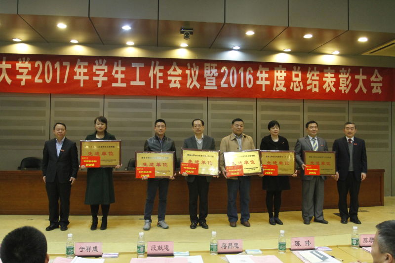 2月28日上午,博彩平台 2017年学生工作会议暨2016年总结表彰会议在逸夫楼报告厅举行,校领导蒋昌忠、段献忠、陈伟出席会议并为获奖集体颁奖。博彩平台 以全校总分第二名的成绩荣获2016年学生工作考核先进单位。