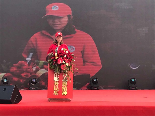 本科生张迎作为志愿者代表在活动启动仪式现场发言。