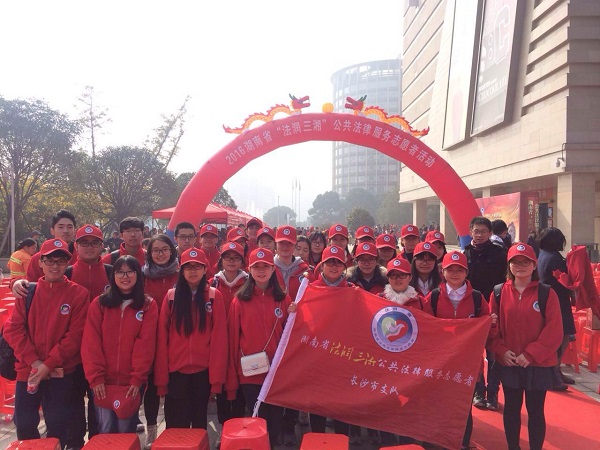 还组织60余名志愿者前往长沙市岳麓区王府井商业广场参加了2016年湖南省“法润三湘”公共法律服务志愿者活动,博彩平台