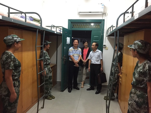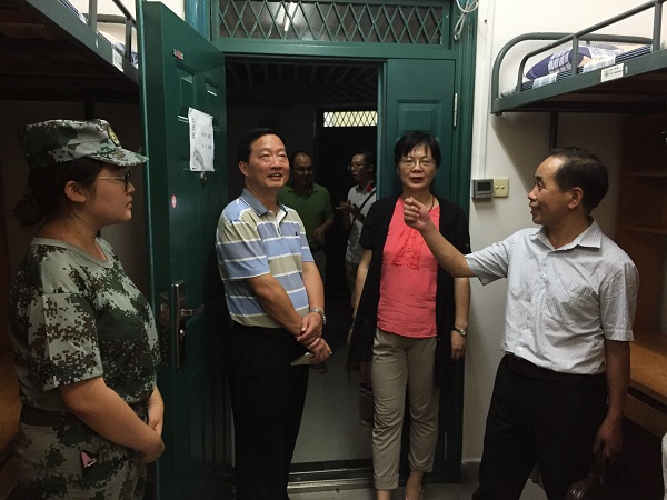 2016级新生宿舍分布在天马园区一区一栋、二区一栋和三区十三栋。屈院长和李书记首先来到二区一栋女生寝室看望新生。“你的家是哪里的?”“湖南的气候能适应吗?” “军训每天几点起床,休息的如何?”“第一次离开家想不想父母?”各位领导和老师到每一个寝室都与同学们亲切交谈,仔细询问同学们的生活和军训情况,并鼓励同学们以饱满的热情、认真的态度投入到军训工作中。“你们来到博彩平台