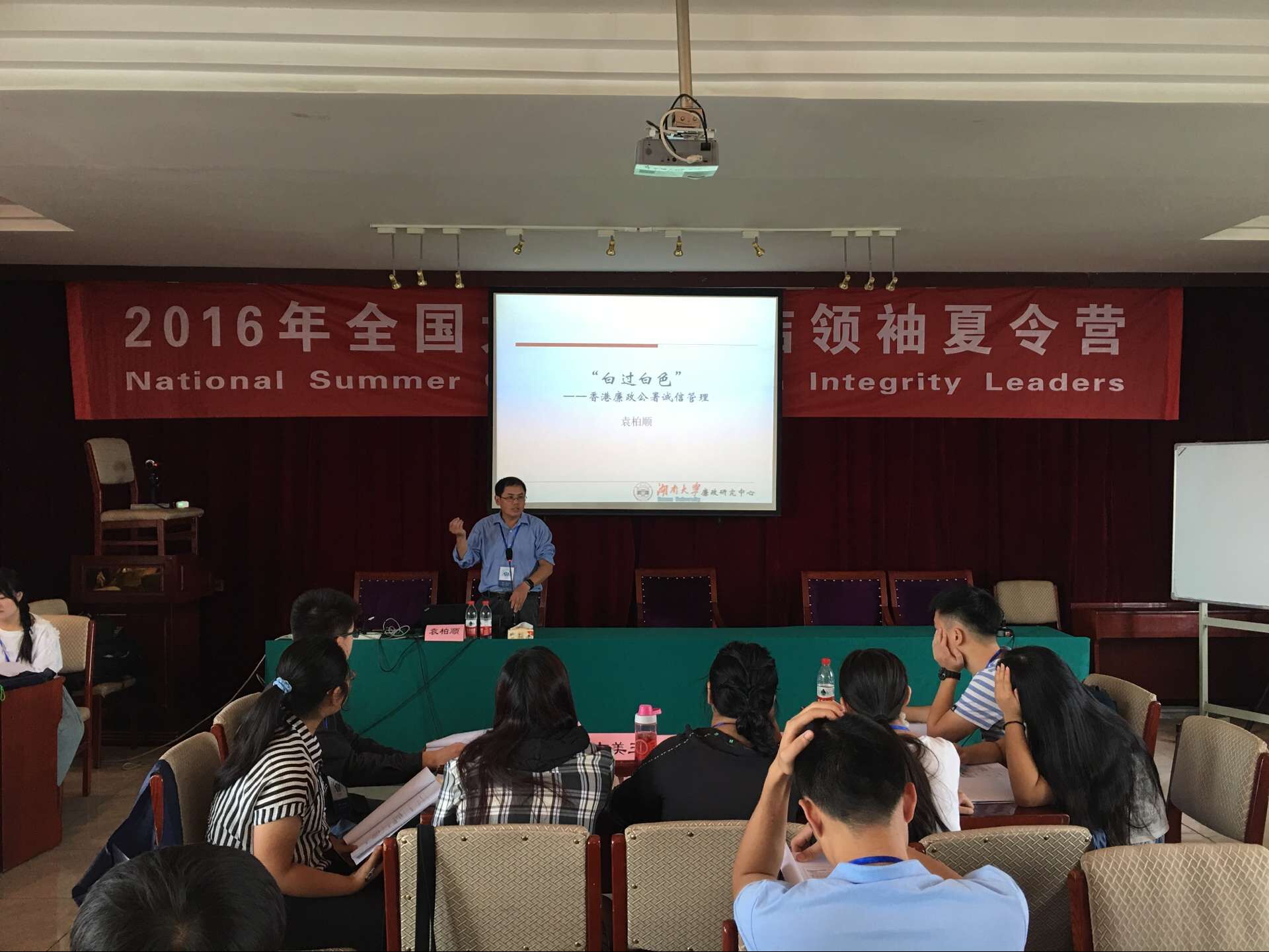 袁柏顺教授作了题为“组织诚信管理:以廉政公署为例”的主题讲座,介绍了世界最廉洁机构的内部诚信管理经验,介绍了组织诚信管理的一般理论及其在各类组织中的应用。同时,夏令营邀请了2012年首批廉洁大使赵庆伟与同学们分享、交流廉洁大使经验与工作体会。此外,夏令营还组织部分高校的廉洁社团和廉洁大使分享了社团活动组织与开展的经验,廉洁大使的使命与作用,以及探讨社团发展面临的挑战及对策。博彩平台