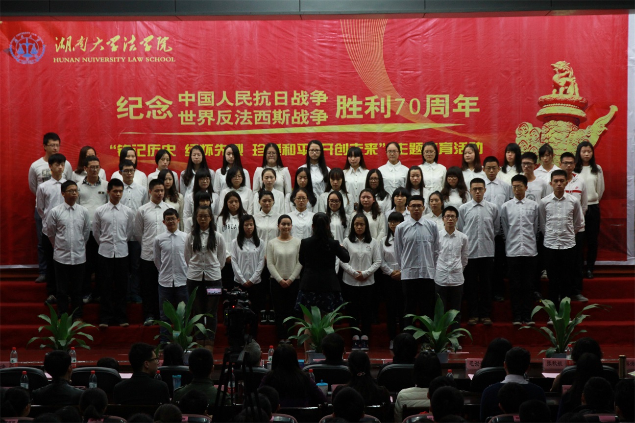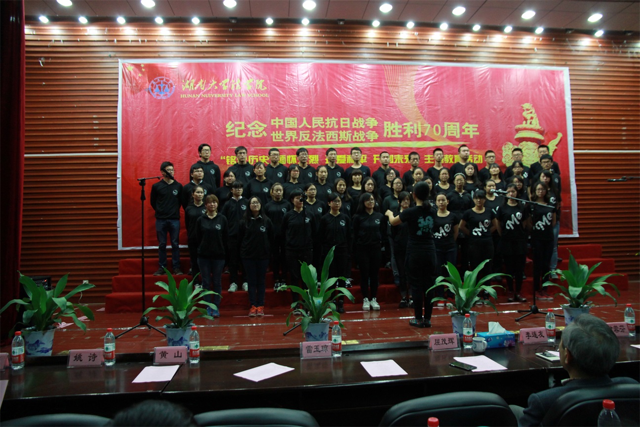2014级和2015级法学一班演唱歌曲《抗日军政大学校歌》、《中国,中国,鲜红的太阳永不落》