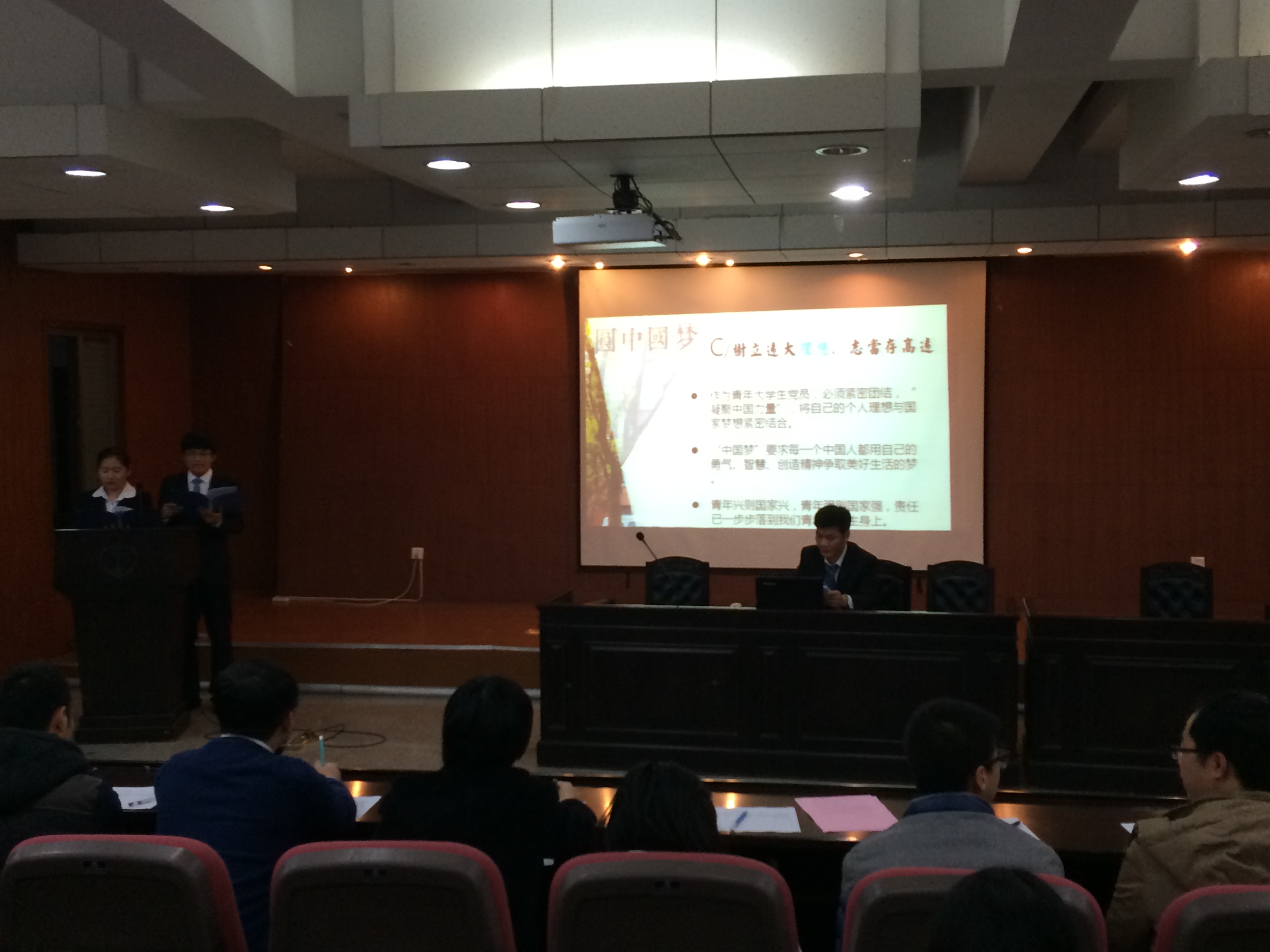 党务与学生工作办公室主任杨锦滔老师宣读了新发展党员名单,46名新发展党员在党旗下庄严宣誓。宣誓仪式后,林义朗同学作为新发展党员代表就如何更好地发挥学生党员的责任、发挥党员的先锋模范作用进行了发言。