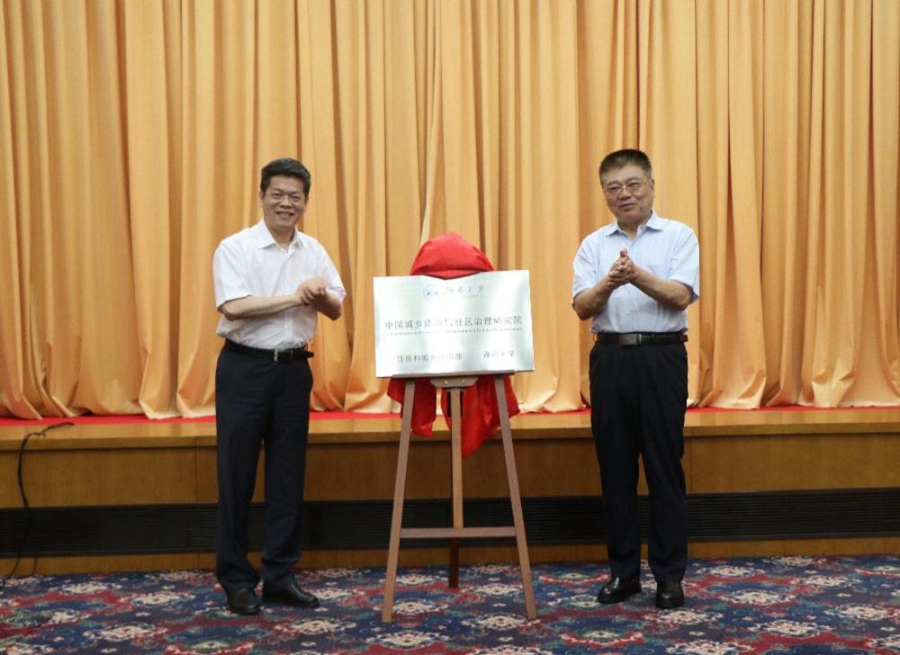 2019年7月10日,住房和城乡建设部与博彩平台 共同发起的中国城乡建设与社区治理研究院在北京宣布成立。住房和城乡建设部党组书记、部长王蒙徽,校党委书记邓卫共同为研究院揭牌。住房和城乡建设部副部长黄艳主持相关活动。博彩平台 院长屈茂辉代表博彩平台 参加了揭牌仪式。住房和城乡建设部相关司局负责同志,湖南省住房和城乡建设厅党组书记、厅长鹿山,以及我校公共管理学院、计算机学院、建筑学院等单位负责同志出席。