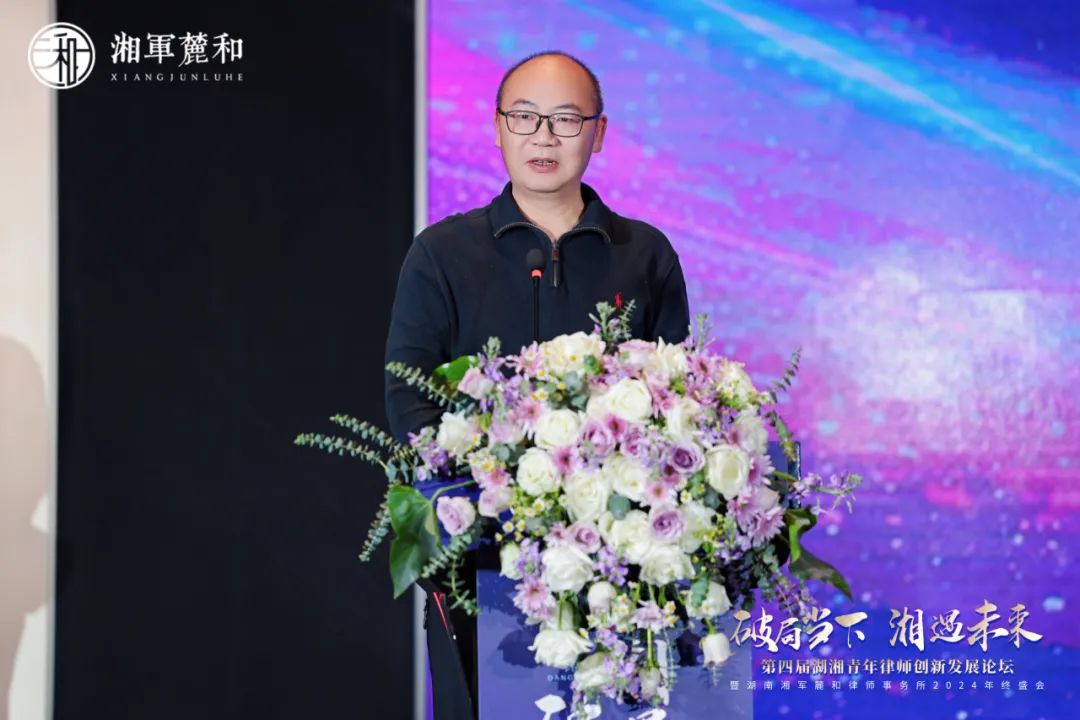 李含英主任首先总结回顾了过去一年律所取得的成绩。他表示,过去一年湘军麓和紧跟行业趋势,立足时代需求,锚定“强所”目标,深入推进“五强”战略,业务体量、人员规模与品牌影响获得稳步提升,在组织、人才、专业、品牌与党建文化等方面硕果累累。广大律师深入践行律所核心价值观,管理层不辞辛劳,积极履行管理职责;青年律师深耕专业,积极参与社会公益,彰显青年律师风采。