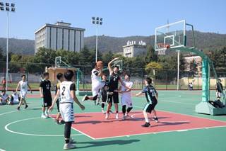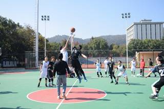 研究生男篮的最后一场比赛在在南校体育馆前举行,本场比赛的对手是新传学院。开场哨吹响,双方队员迅速投入比赛,展开激烈角逐。
