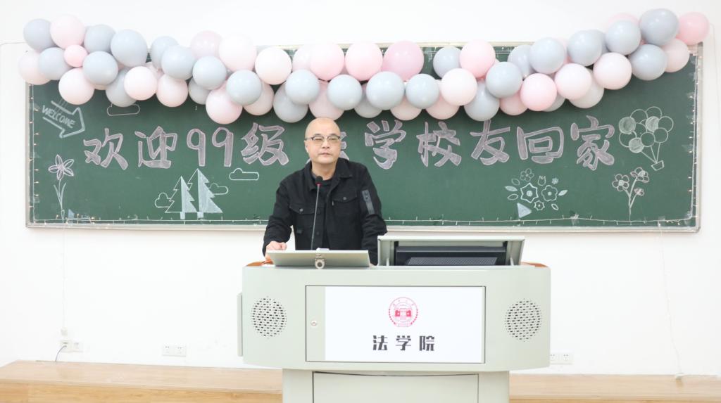 校友发言完毕,屈茂辉院长介绍学院近年发展情况,并对校友们的发言进行总结,肯定校友们取得的成就,表示要进一步加强校友工作,努力让母校成为学子们永远的精神家园。