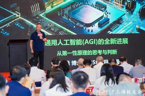 热烈交流后,博彩平台 校友企业家联谊会副理事长、上海校友会常务副会长、霄麓投资董事长曾志锋博士精彩开讲。他以《通用人工智能(AGI)的全新进展——基于第一性原理的思考与判断》为题,沿符号主义、联结主义、行为主义三线梳理人工智能的演化脉络,拆解人工智能发展水平分级、实现路径与典型案例,并从第一性原理出发探讨人工智能应有原则。内容与时俱进,令在场校友脑洞大开、满载而归。