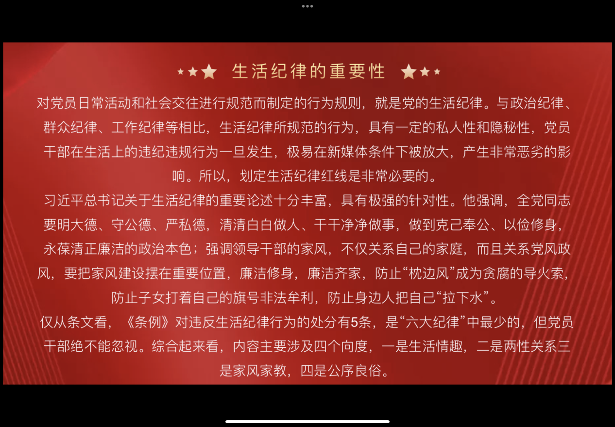 2023级法律硕士(法学)党支部于2024年6月11日在线上召开了一次党纪学习教育专题党课,旨在深入学习贯彻党的纪律要求,加强党员的党纪教育和党性修养。党课上,支部书记首先强调了党纪学习教育的重要性,指出党纪是党的生命线,是全体党员必须严格遵守的行为准则。随后,详细解读了《中国共产党纪律处分条例》的相关内容,通过典型案例的分析,让党员们深刻理解了党纪的严肃性和权威性。在学习的过程中,党员们纷纷表示,要将党纪学习教育成果转化为实际行动,时刻保持清醒头脑,坚守党的纪律底线。他们积极发言,分享自己的学习心得和体会,并就如何在日常生活中更好地遵守党纪、发挥党员先锋模范作用进行了深入讨论。此次党纪学习教育专题党课的召开,不仅提高了党员的党纪意识和党性修养,也进一步增强了支部的凝聚力和战斗力。党员们一致表示,将以此次党课为契机,不断加强自身学习,严于律己,争做合格党员,为党和人民的事业贡献自己的力量。